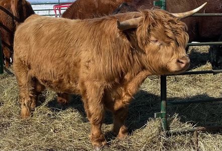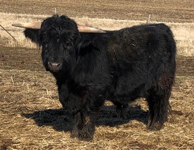 Pounder is the most impressive miniature Highland bull we have set our eyes on. His massive muscle and tiny stature put him in a league of his own. He sires heavy long hair coats and friendly gentle babies. Look for his 2021 babies in upcoming sales.
