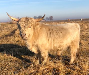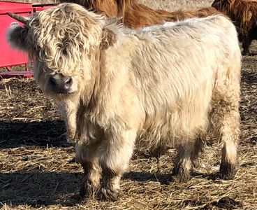 Sully is a Gorgeous rare miniature highland double dilute Silver dun bull. Sully has moved into our bull battery to stamp new genetics in our baby calves in 2021. Look forward to his amazing babies in sales this year.