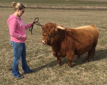 Leo sets the bar for amazing Highland hair. This guy has a sweetheart disposition and is an excellent representative to enhance miniature highland cattle.